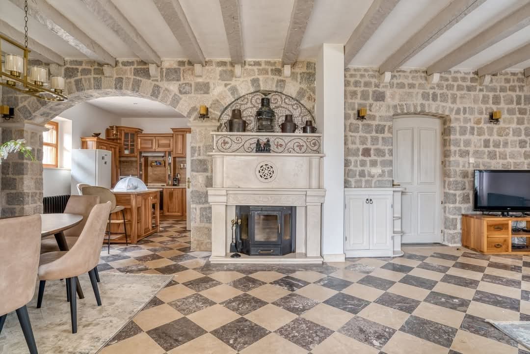 Raspoređena je na tri nivoa ukupne površine 500m2, podignuta je na velikom placu površine 2.409m2. Pažljivo projektovana i građena od prvoklasnih materijala, pri čemu svaki detalj odiše kvalitetom. Od tradicionalne kamene fasade do pažljivo biranih završnih obrada u enterijeru, ovdje ništa nije prepušteno slučaju. Ovo je dom građen ne samo za sadašnjost, već i kao trajna vrijednost.