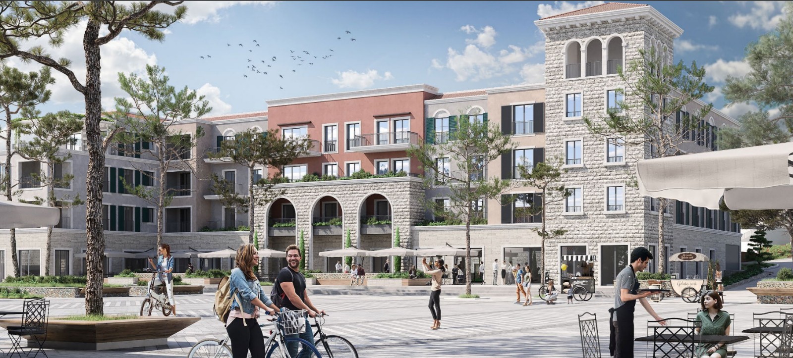 Pažljivo planirana kombinacija stambenih i komercijalnih sadržaja, uz obilje javnih prostora, stvara dinamično i povezano okruženje koje poštuje prirodni pejzaž i podstiče boravak na otvorenom. Široke ulice, uređeni trgovi i centralna piazza, okruženi prodavnicama, kafićima, restoranima i galerijama, čine Centrale živopisnim mjestom sa stalnom energijom i osjećajem zajednice.